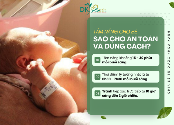 Lưu ý: Với trẻ dưới 6 tháng tuổi, nên hạn chế tối đa việc tiếp xúc trực tiếp với ánh nắng. Thay vào đó, hãy cho bé ở nơi thoáng mát, có ánh sáng tự nhiên gián tiếp và tham khảo ý kiến bác sĩ nếu cần bổ sung vitamin D.
