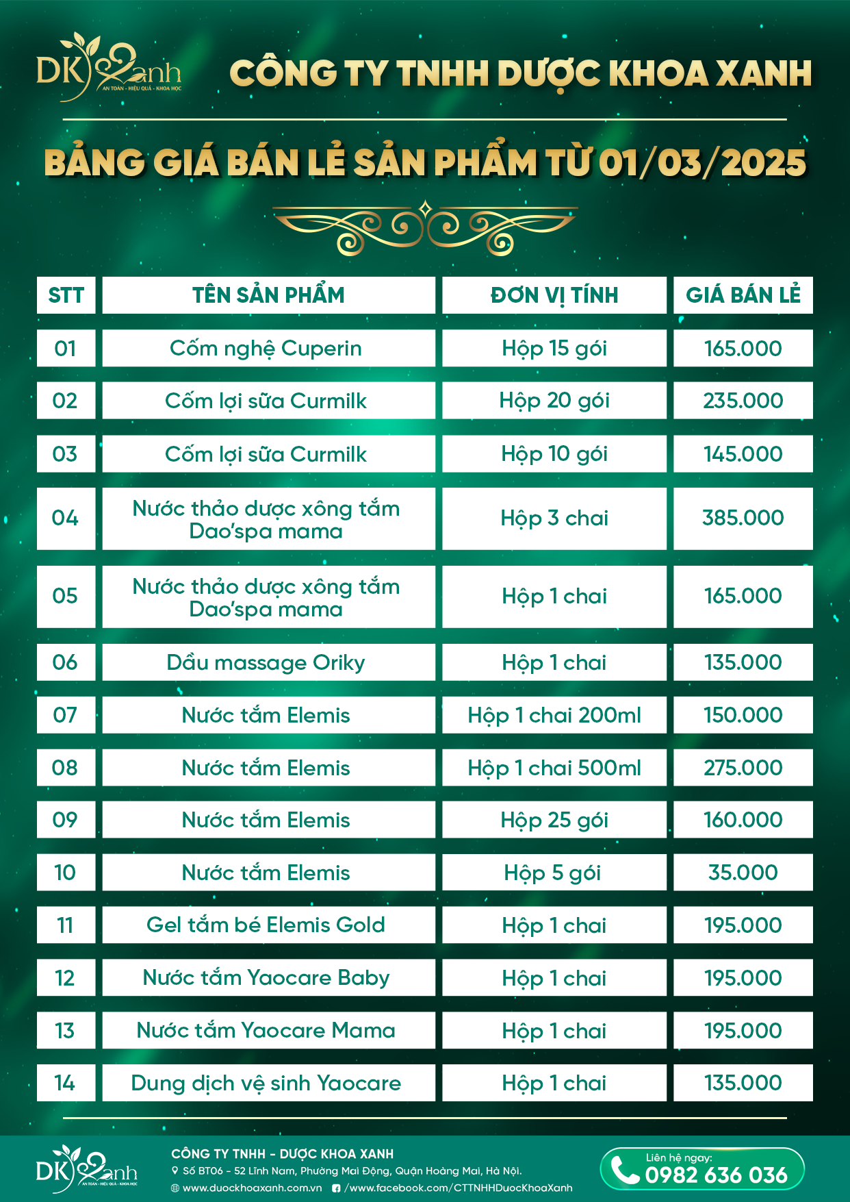 Nhằm đảm bảo chất lượng sản phẩm và hoạt động sản xuất kinh doanh trong giai đoạn sắp tới, Công ty xin gửi đến Quý khách hàng bảng giá bán lẻ sản phẩm năm 2025, áp dụng từ ngày 01/03/2025 (chi tiết trong danh mục đính kèm).