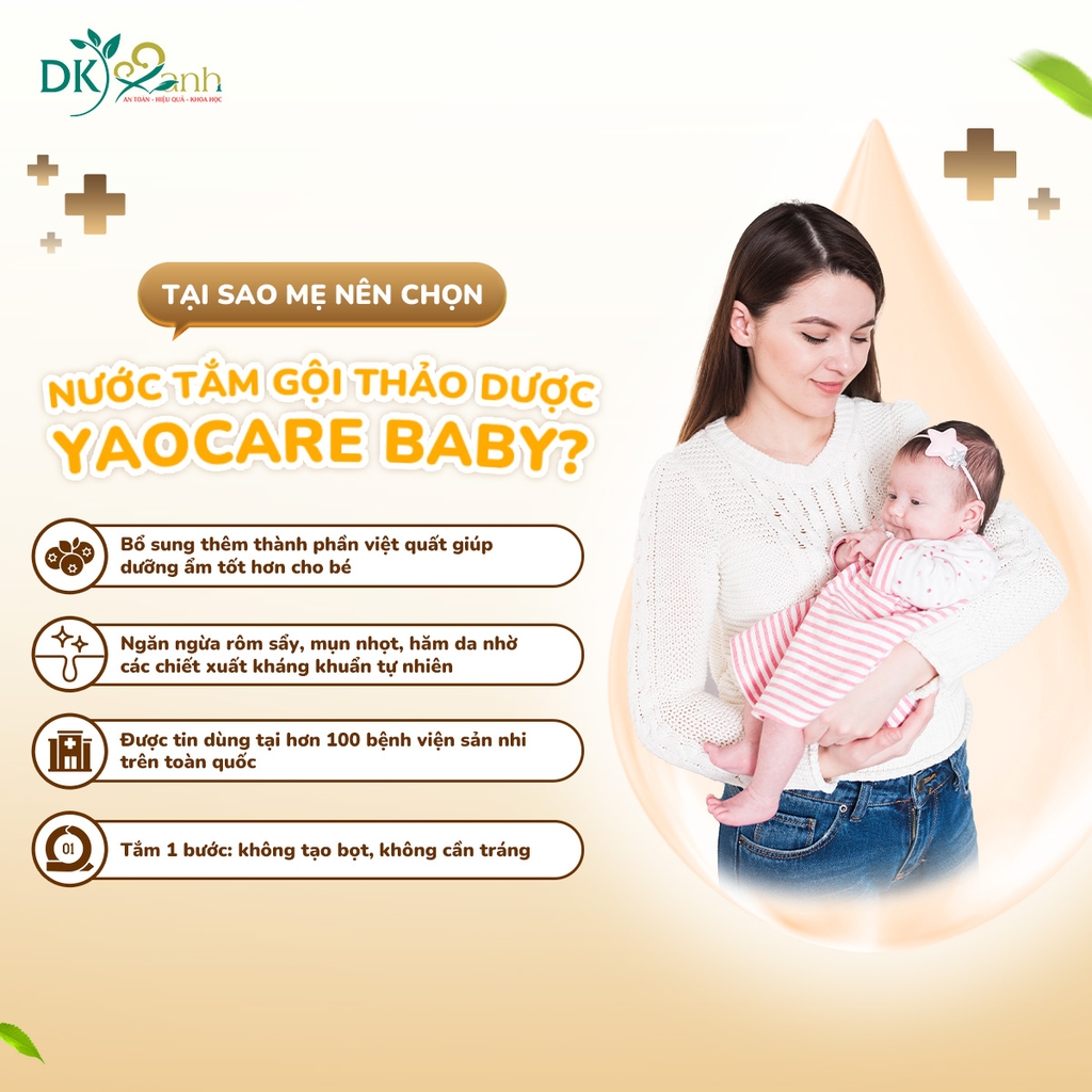 Thấu hiểu điều đó, Công ty Cổ phần Dược Khoa đã cho ra đời sản phẩm Nước tắm gội thảo dược trẻ em Yaocare Baby như một giải pháp chăm sóc toàn diện cho bé. Với công thức 2 trong 1, sản phẩm vừa là sữa tắm vừa là dầu gội, giúp mẹ tiết kiệm chi phí, thời gian mà vẫn đảm bảo làm sạch dịu nhẹ, nâng niu làn da nhạy cảm của bé yêu.